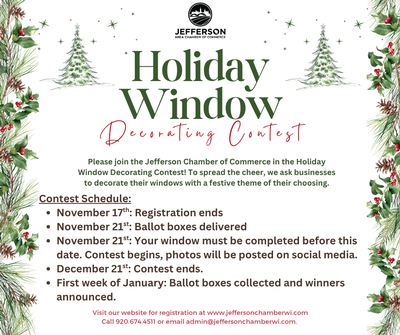 The Jefferson Area Chamber of Commerce invites you to celebrate the season by visiting participating local businesses and casting your vote in our Holiday Window Decorating Contest!