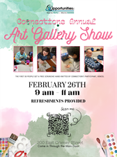What are your plans for February 26th? We invite you to join us from 9-11 am to check out our 3rd Annual Art Show! Hosted by participants in Connections, our adult day program. Everyone has been hard at work creating and they are so excited to share it with you!